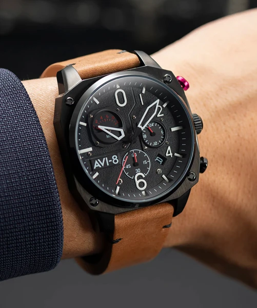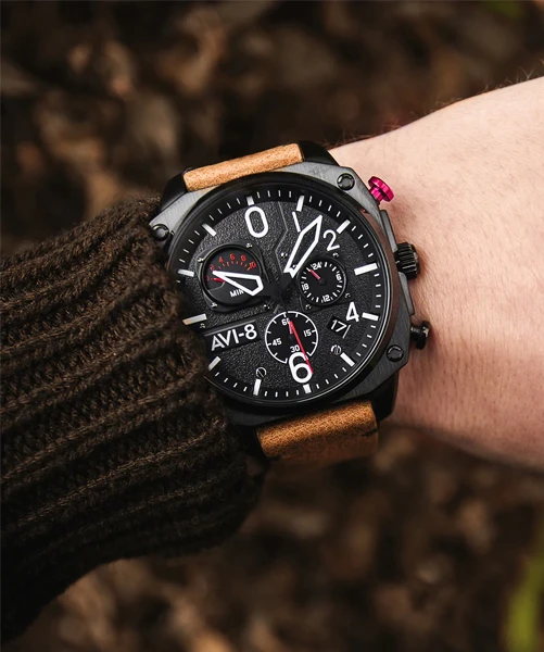 The AV-4052-02 Â is an iconic edition of the British brand Avi-8. Made of quality 316L stainless steel, the housing of this Flyboy resists corrosion thanks to its low carbon structure.