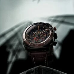 The Hawker Hunter Dual Time Chronograph watch is a remarkable timepiece that combines style and functionality in an elegant manner. This is an Avi-8 men’s watch, reference AV-4100-08, black in color.