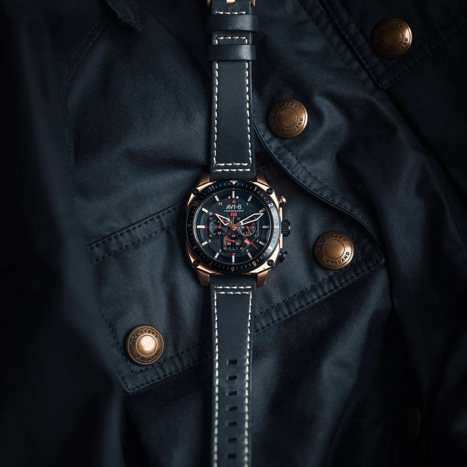 AVI-8 HAWKER HUNTER DUAL TIME CHRONOGRAPH JET BLACK