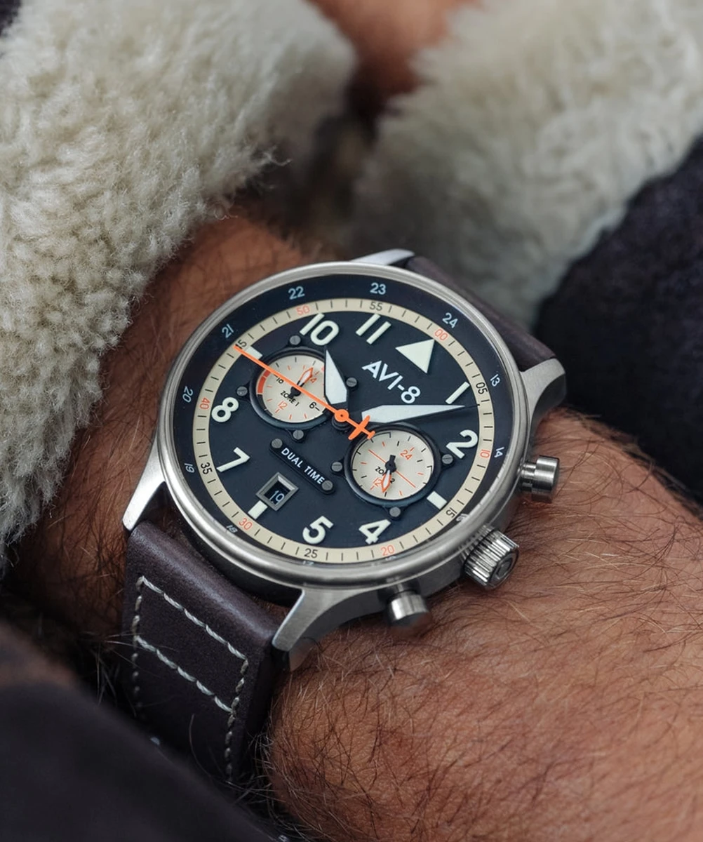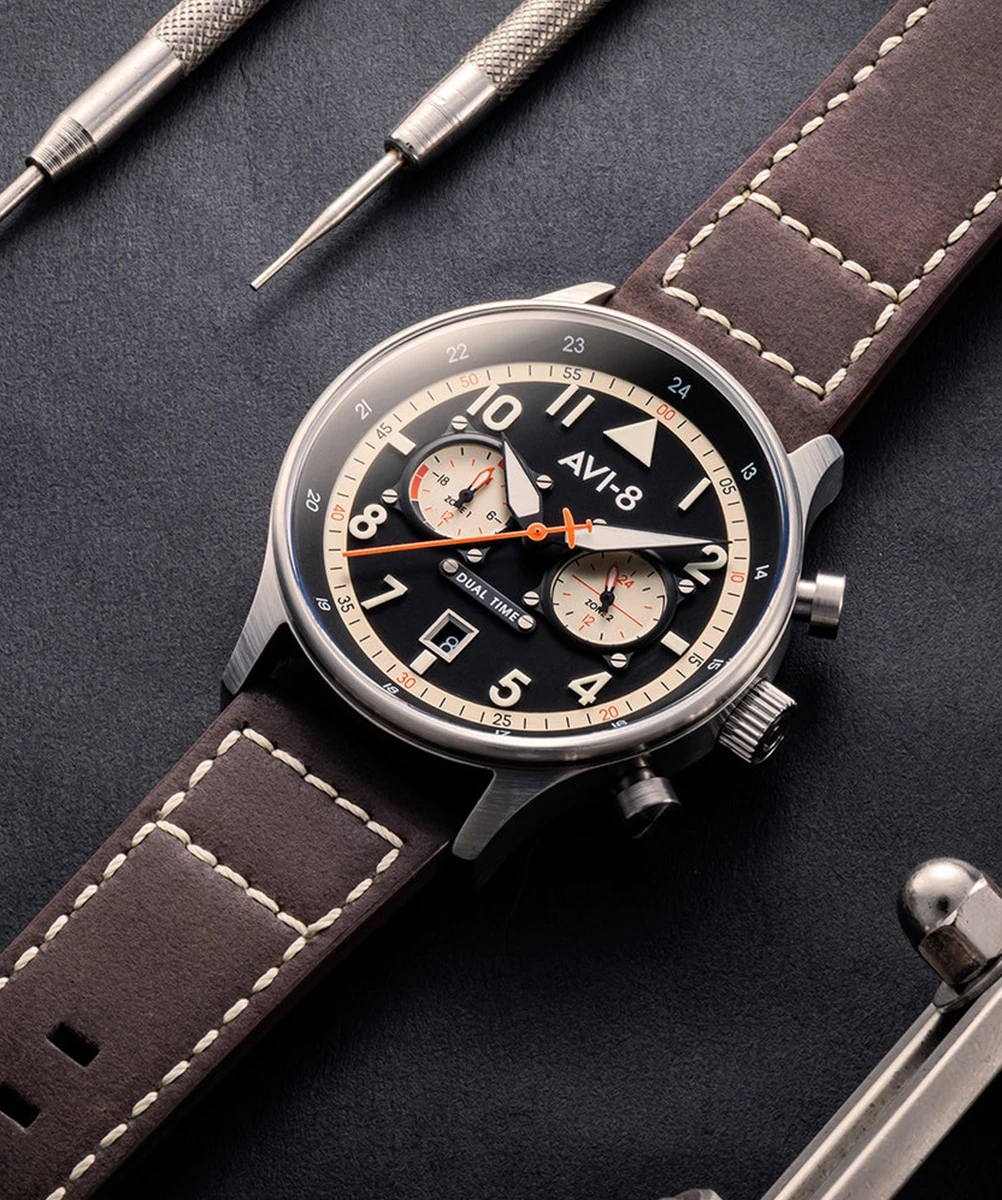 The AVI-8 Hawker Hurricane Dual Time Brown watch seamlessly fuses aviation heritage with contemporary watchmaking, delivering a unique fusion of style, functionality and historical significance. Whether you are an aviation enthusiast or simply appreciate exquisite craftsmanship, this watch is a remarkable addition to any watch collection.