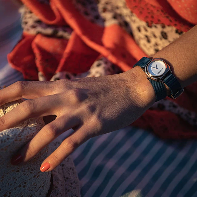 Thus, the nylon bracelet is only one piece of fabric, which comes to slip in the manner of a Nato under the pumps connecting the horn between! This rapid interchangeability system offers the watch wearer a wide choice of colors and materials to replace his bracelet according to the desires and the seasons: this, in a handful of seconds!
