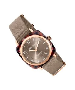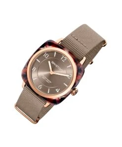 Sous le capot, on retrouve un mouvement signé Miyota : le fameux OS21 qui a prouvé sa robustesse et sa fiabilité au fil des années. Celui-ci comporte également un mouvement à guichet de date à 6 heures, marqué “Clubmaster Classic Acetate Gold Rose – Taupe”.