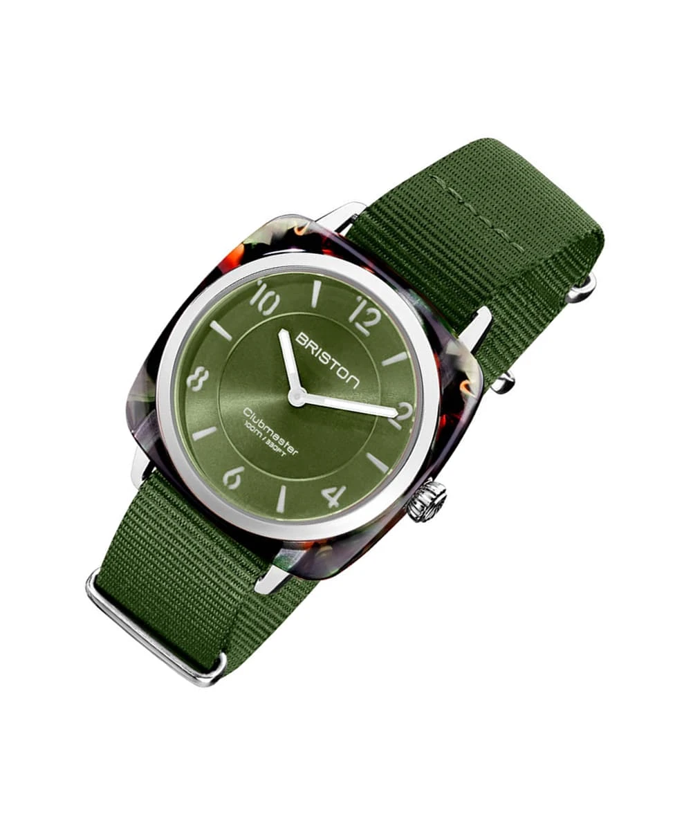 The Briston Clubmaster Chic Olive Green 36 mm watch is a revolution. With its original design, contemporary look and use of innovative materials, the French brand quickly achieved remarkable success in France from its debut in 2014; then on the other side of the Atlantic, in Europe, and finally in Asia, where the watchmaking company developed rapidly. A feat achieved in a few years thanks to a visionary: Brice Jaunet, founder of the brand and former employee of Zenith, Baume et Mercier or Cartier…