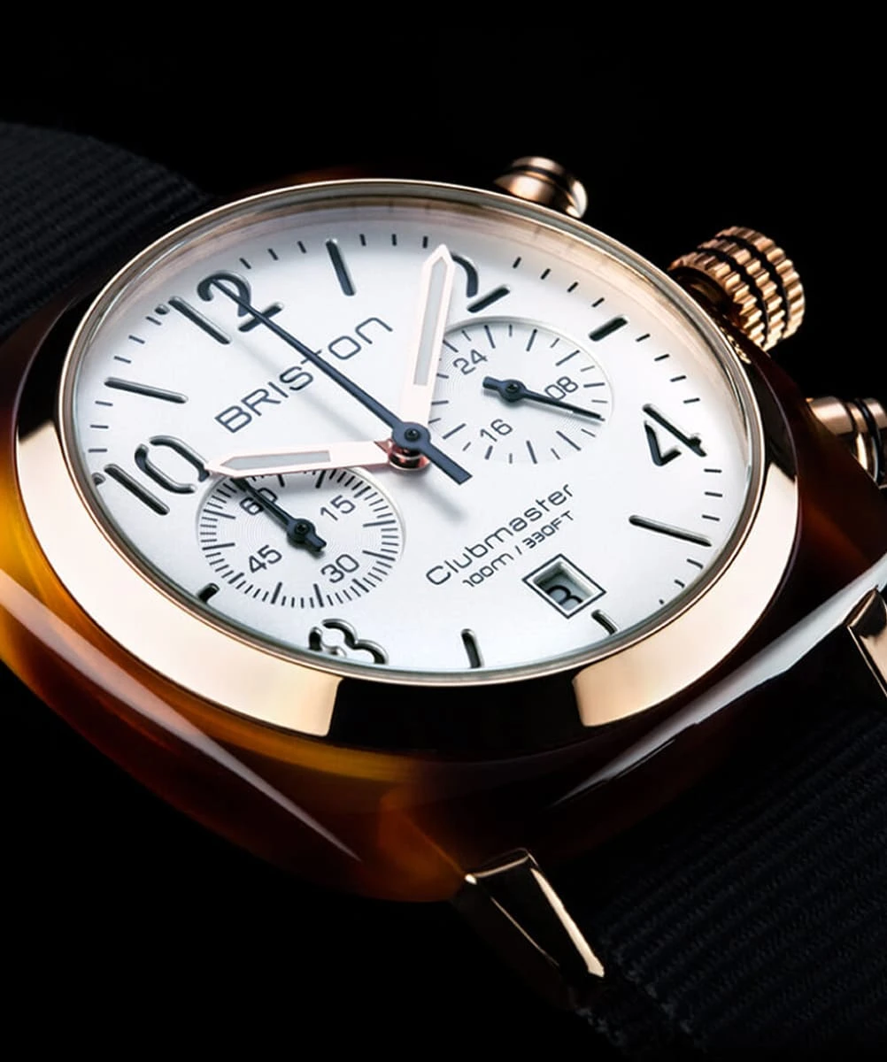 It must be said that its acetate case with impeccable details does not go unnoticed. The Briston House designers had the brilliant idea of ​​working with innovative materials such as cellulose acetate or polished steel to create this sporty chic English style.