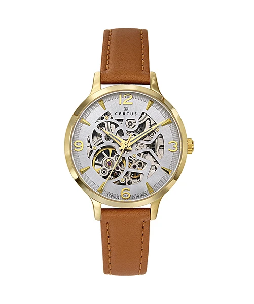 An automatic movement equips this Certus watch for women. With 21 jewels, it has a 36-hour power reserve.