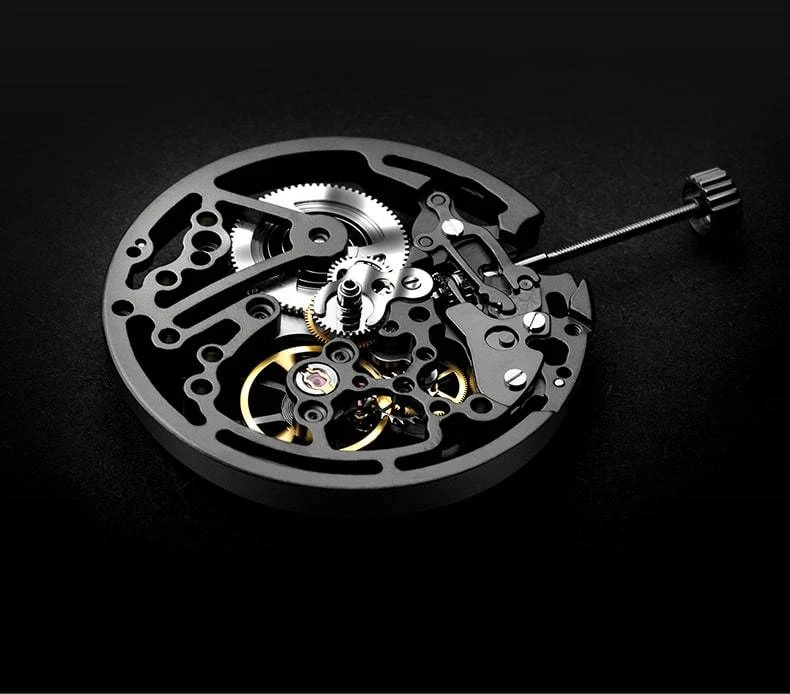 The custom SEAGULL automatic movement means that your own body is the one that powers the watches. Kinetic energy is harnessed from your activities and used to power mechanical motion.