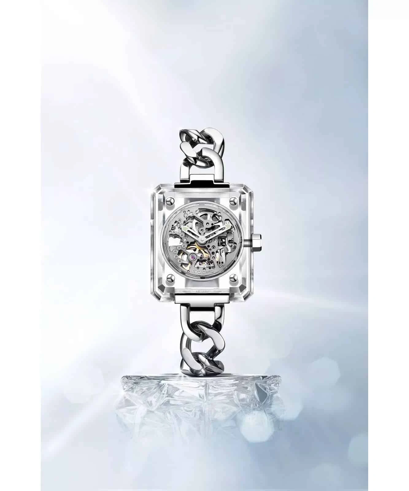 “The fusion of Scandinavian minimalist design and oriental imagery combine to create the classic beauty of the Crystal Love. The secret garden blooming on the wrist captures every moment with every beat.”