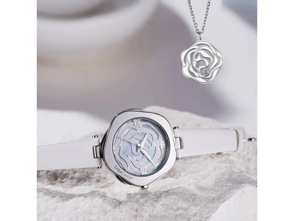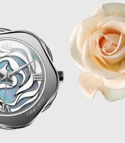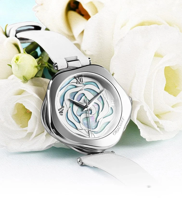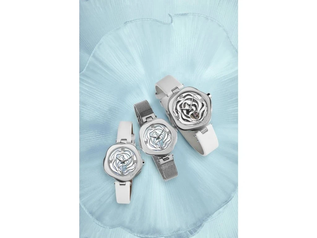 “The fusion of Scandinavian minimalist design and oriental imagery combine to create the classic beauty of the Danish rose. The secret garden blooming on the wrist captures every moment with every beat.”
