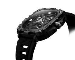 The inner mechanism is showcased by the transparency of the sapphire front glass, which features 1800 Vickers (9 Mohs) hardness, making the X Series highly resistant to scratches.