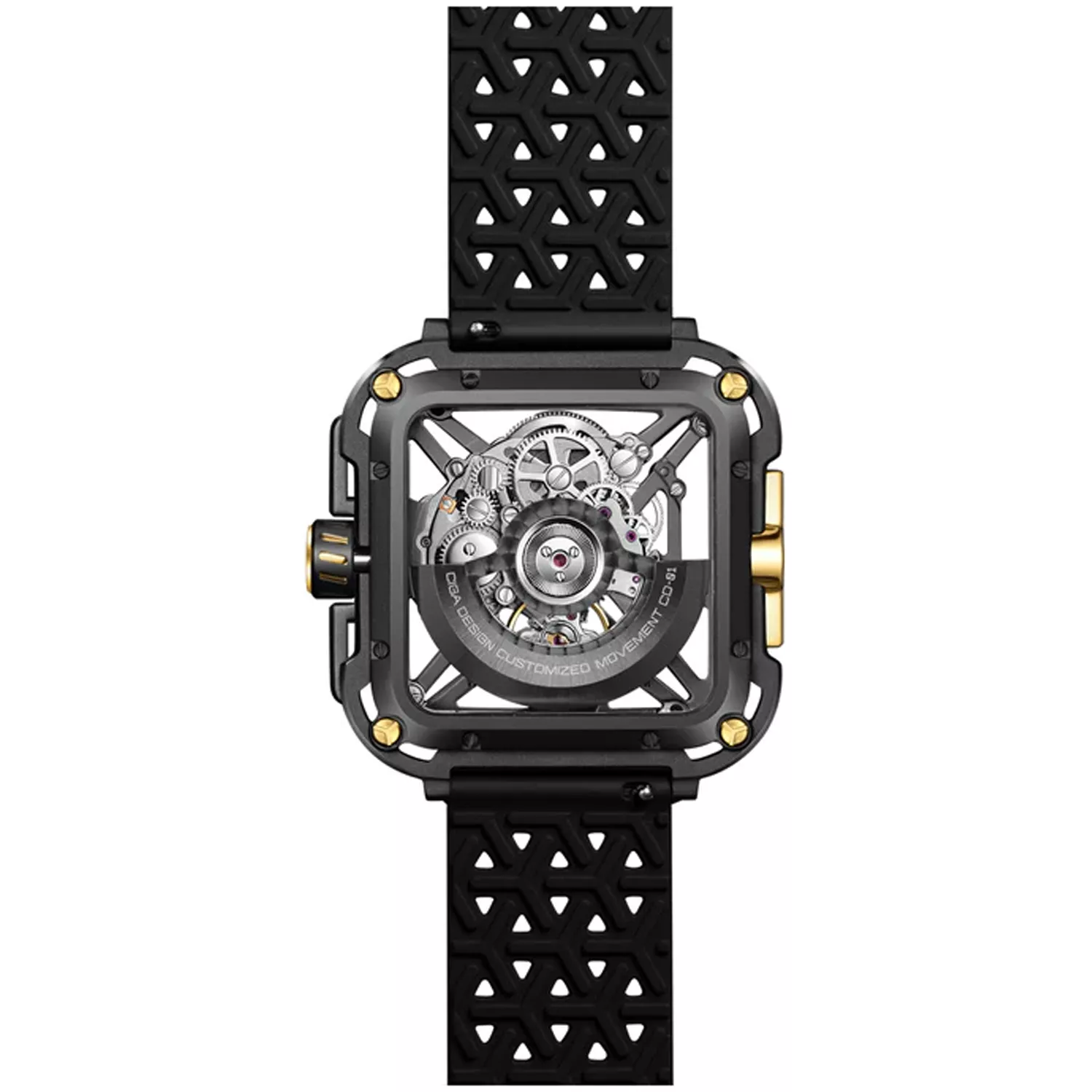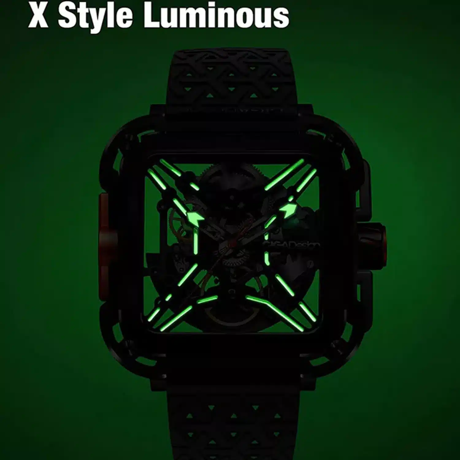 The inner mechanism is showcased by the transparency of the sapphire front glass, which features 1800 Vickers (9 Mohs) hardness, making the X Series highly resistant to scratches.