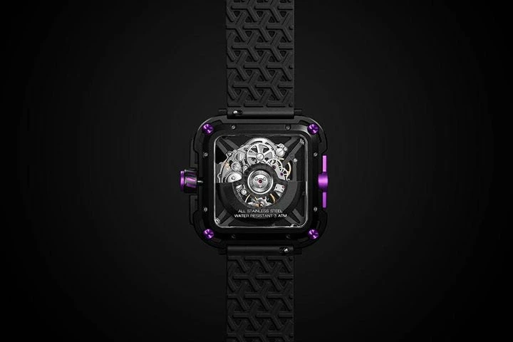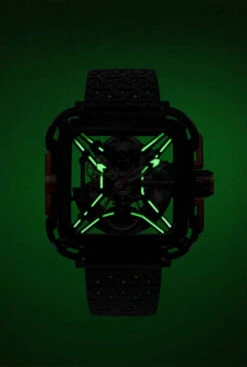 The inner mechanism is showcased by the transparency of the sapphire front glass, which features 1800 Vickers (9 Mohs) hardness, making the X Series highly resistant to scratches.