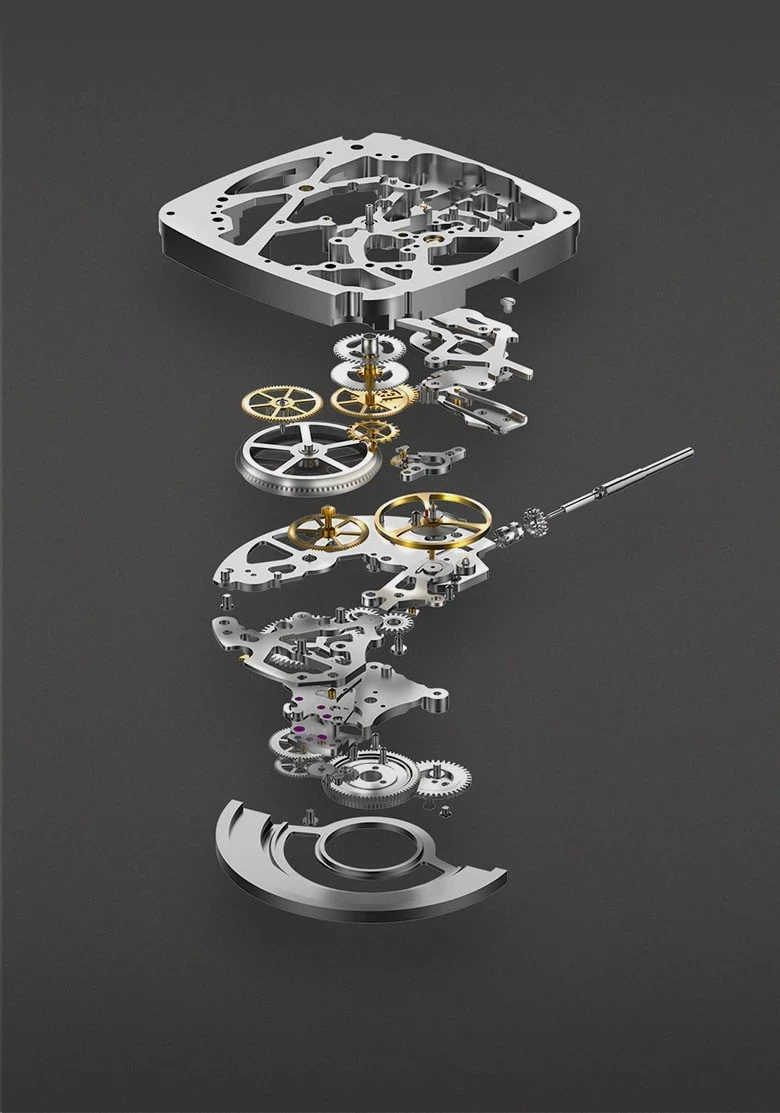 The X Series integrates a patented automated mechanism embedded into a unique X-shaped skeleton – the core of the utmost sophisticated experience. Decorated with 25 jewelry made of mineral crystals, which are important for low friction, long life and increased accuracy.