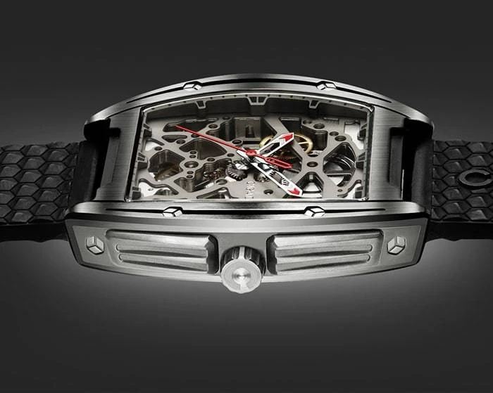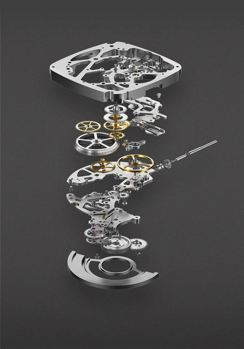 The fourth color brought by the balance wheel and some gears contrasts the whole with finesse and harmony. This hint of gold brings the necessary finish to the style of this CigaDesign Z-series Titanium Black to make it a rare product, which can be worn at the office, in the evening or in our daily life.