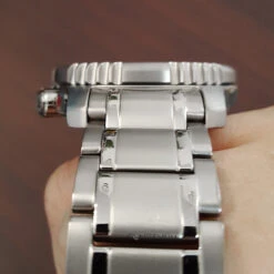 By taking a close look at the dial, we notice that the indexes are not the only ones to be treated with this component, but that the hour, minute and second hands are also provided.