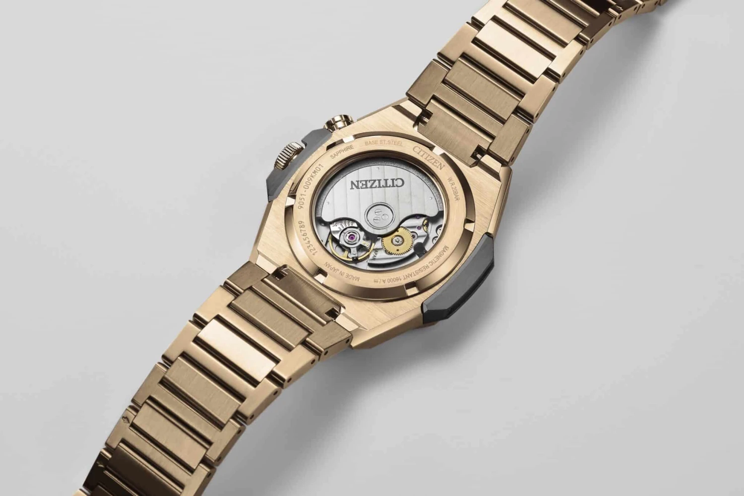 The sapphire crystal caseback of the new Series 8 watches reveals the self-winding Calibre 9051, a product of the CITIZEN Manufacture. This movement achieves a daily precision of -10 to +20 seconds, with a 42-hour power reserve. Its particularity lies in its increased resistance to the magnetic fields generated by all the connected devices that surround us, enabling it to maintain its level of precision in all circumstances (Calibre 9051 has a magnetic resistance of up to 16,000 A/m). Another particularity of the 9051 movement is that, on these three new models, it is now water-resistant to 200m.