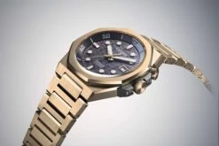 The three new models include a steel edition with a midnight blue dial, a pink gold-plated edition with an anthracite grey dial, and a limited edition with a pink sakura dial. Their cases feature a unique three-piece construction, an elegant octagonal bezel and mirror and brushed finishes. The thick design of the bi-directional inner bezel gives these watches an even sportier look.