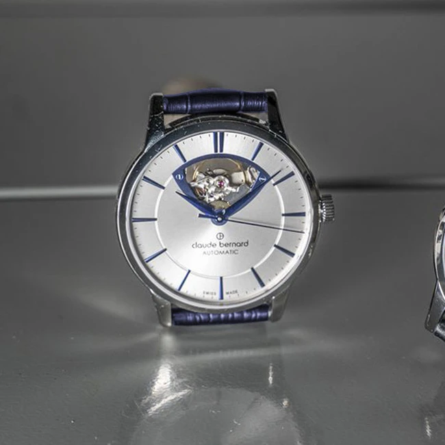 The ETA 2824 Swiss Made movement, known for its robustness and longevity, equips Claude Bernard’s Classic series. Modified by the watchmakers of the brand, it benefits from the skeleton opening at noon.