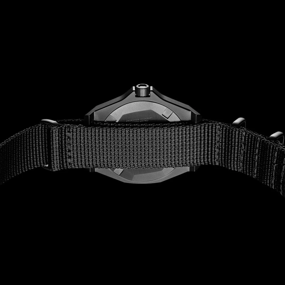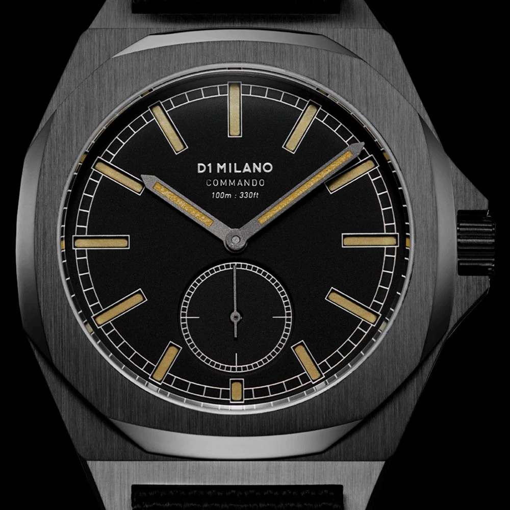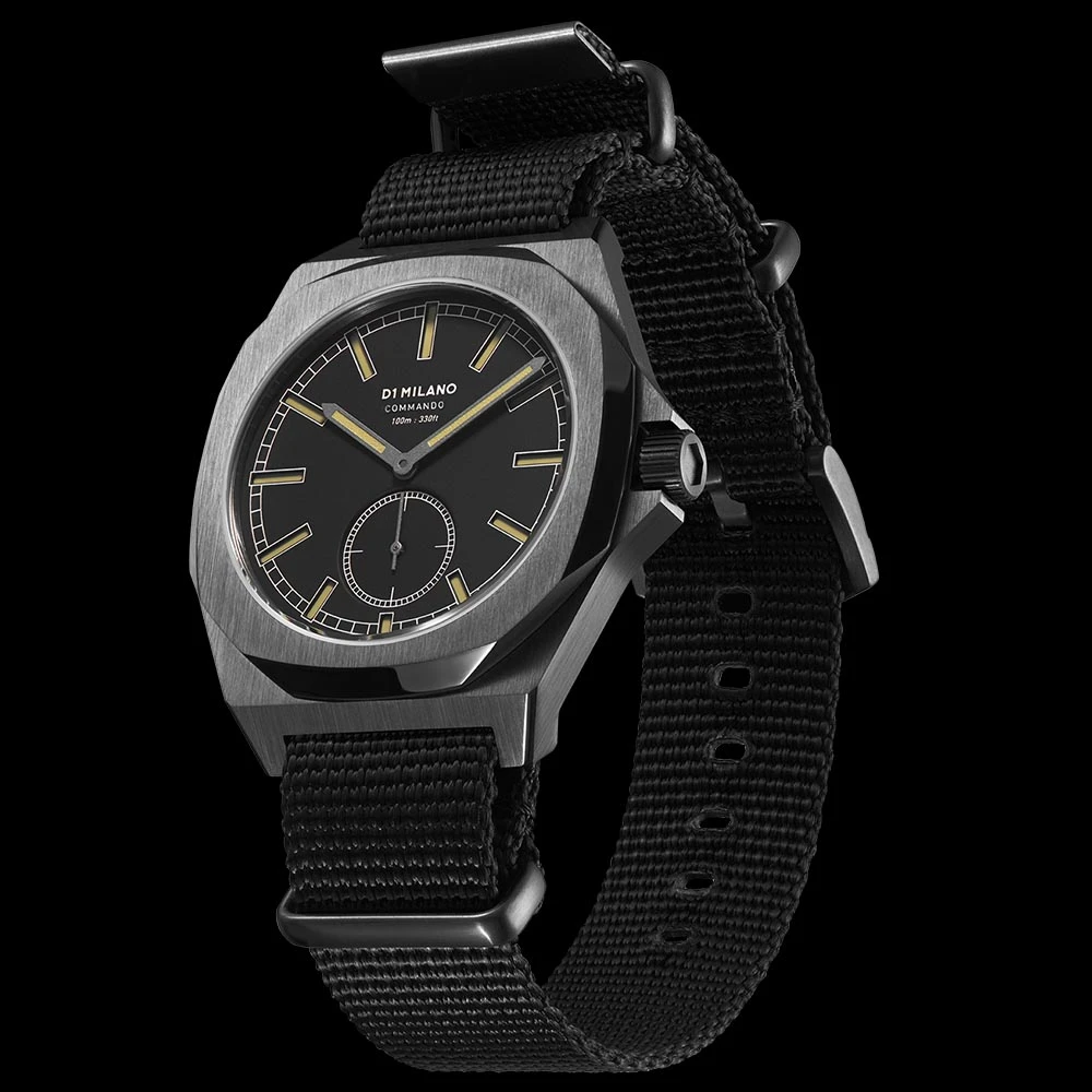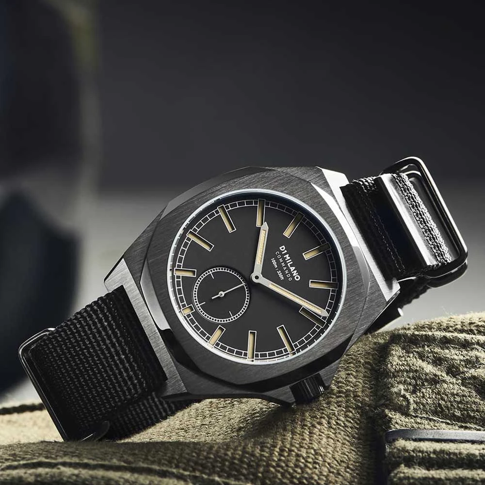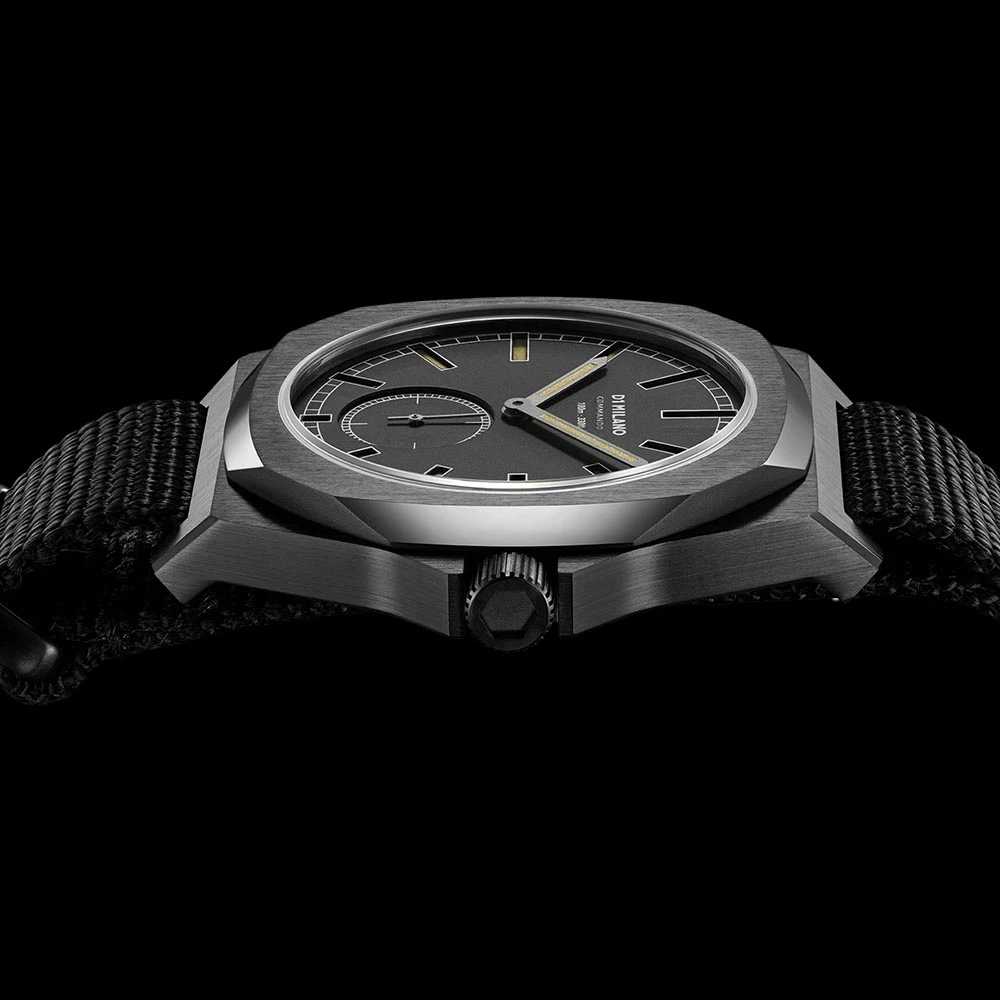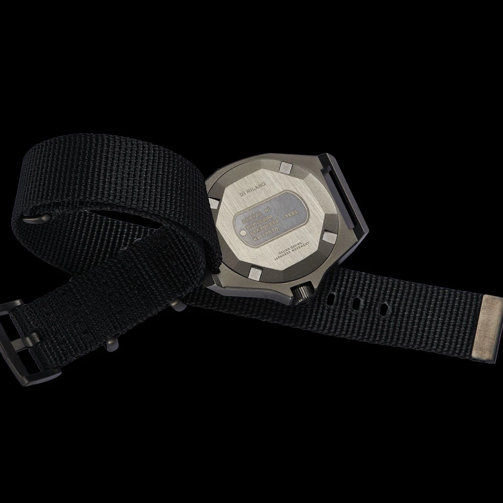 The Miyota 1L45 movement, Japan Made, renowned for its robustness and longevity, equips the D1 Milano Commando