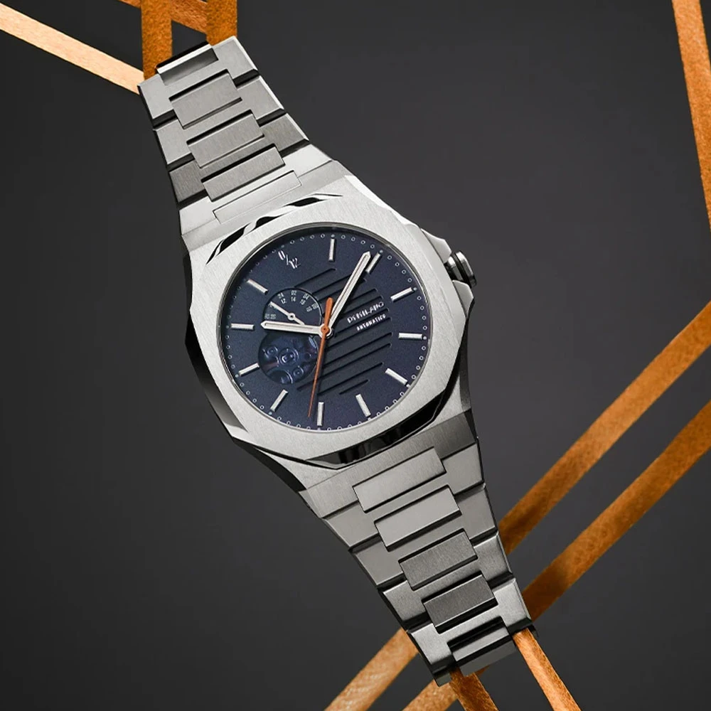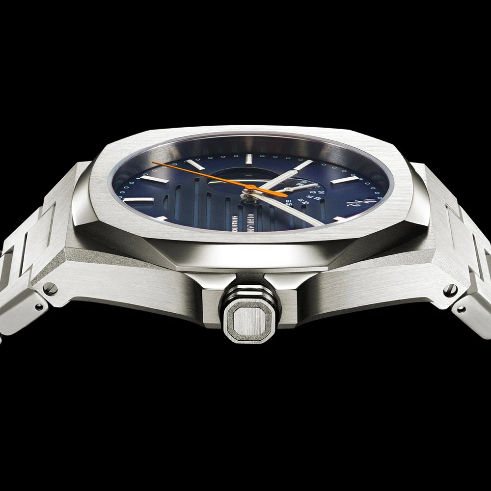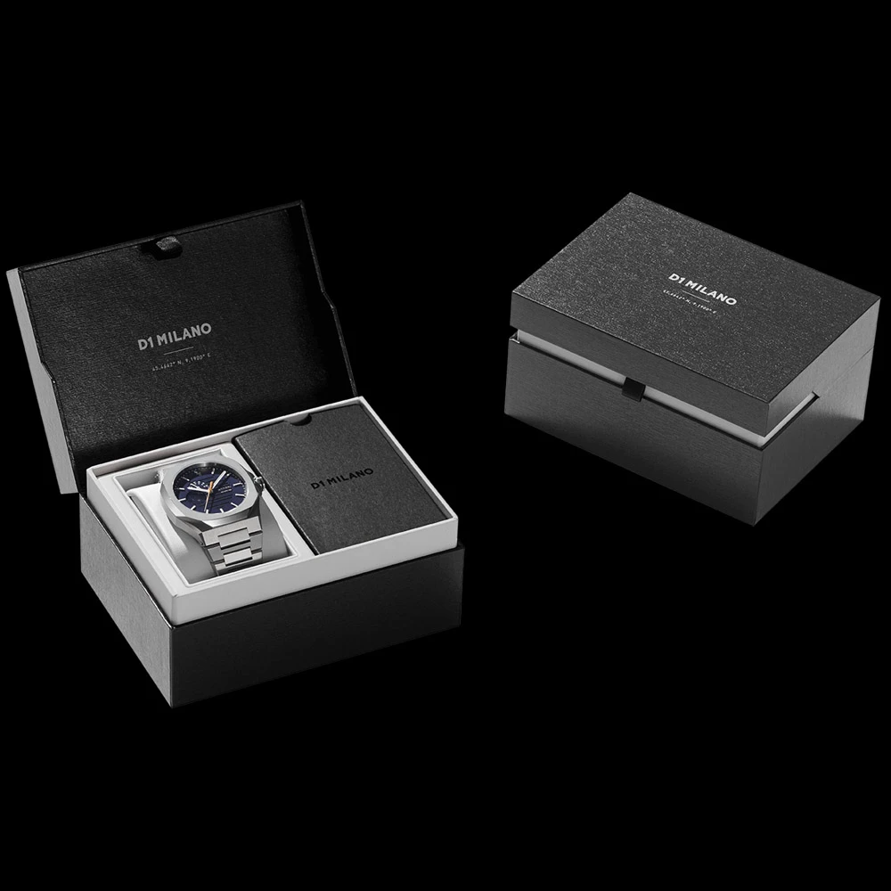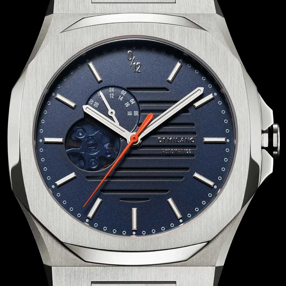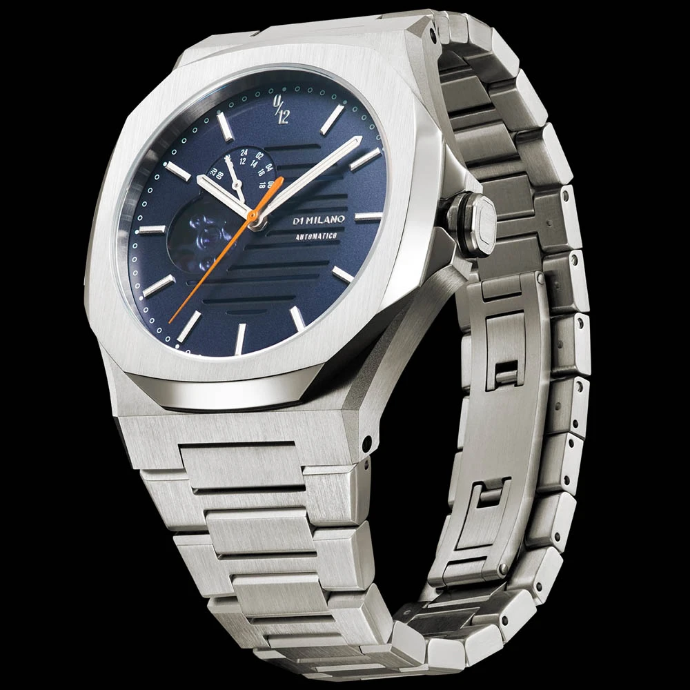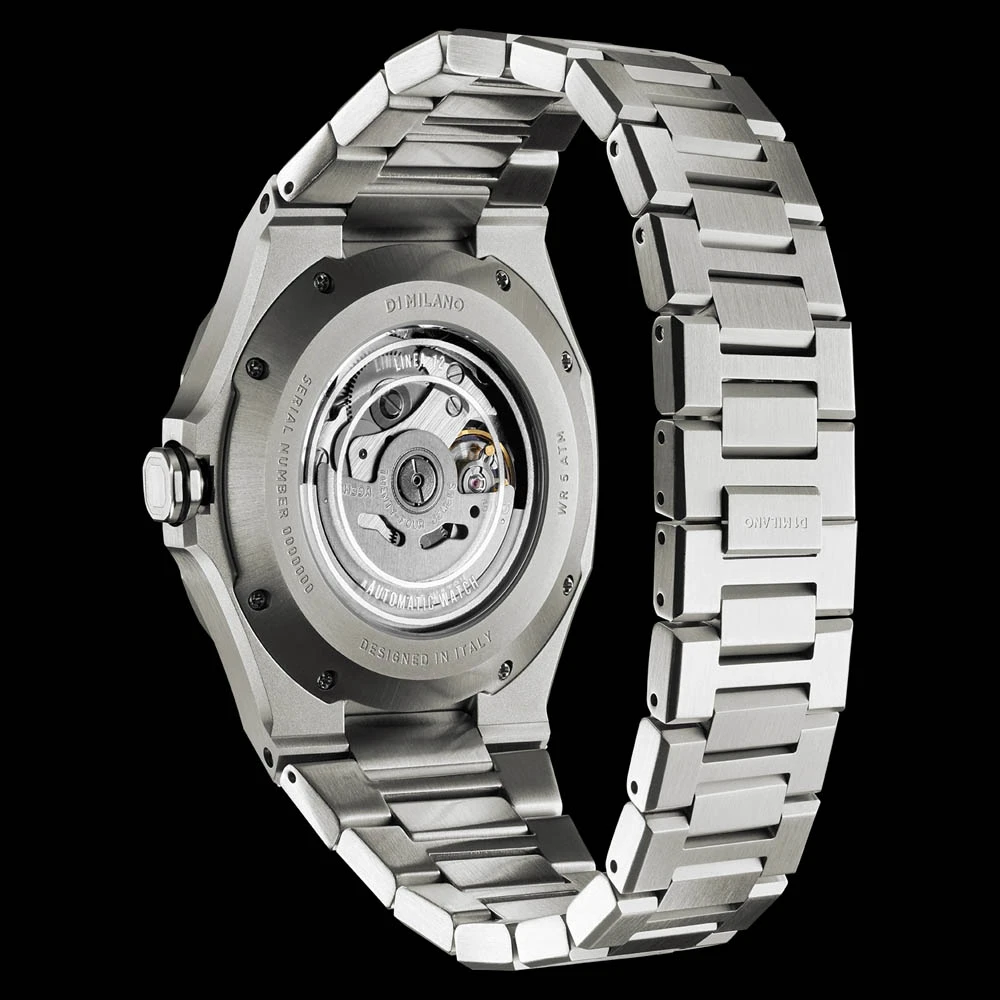 The Seiko SII NH39 movement, Japan Made, renowned for its robustness and longevity, equips the D1 Milano Linea. Possessing 24 jewels, it enjoys a beautiful 40-hour power reserve.