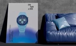 Case of 40.5 milliliters that will fit the vast majority of wrists, this timepiece is dressed with a bracelet Polycarbonate, which brilliantly embellished the matte blue case. The logo of the house is found in various places, including the back of the bracelet or on the buckle.