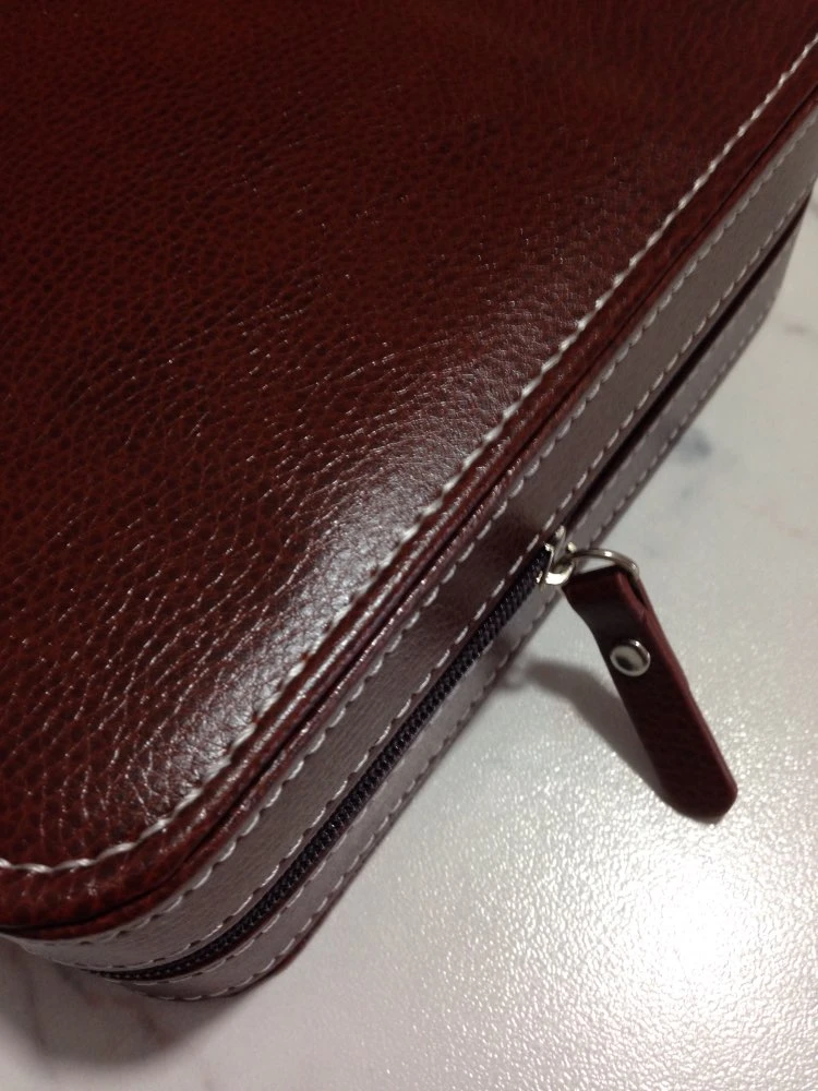 In the center, you’ll also find a zipper and a synthetic leather divider in the center of the case.