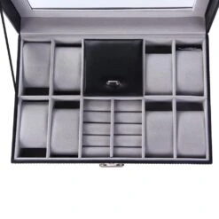 In the center, you will also find a place for the storage of rings, bracelets or cufflinks.
