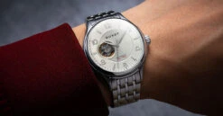 The PATRIOS SUNRAY series is part of the PATRIOS line. Equipped with a screw-in crown, the case is water resistant to 100 meters, ensuring water resistance. The opening at 9 hours is subtle but always awesome.