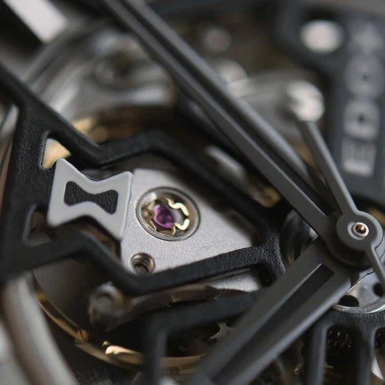 -A self-winding, manual movement, the 85 Base SW200 caliber, also equipped with a stop-second