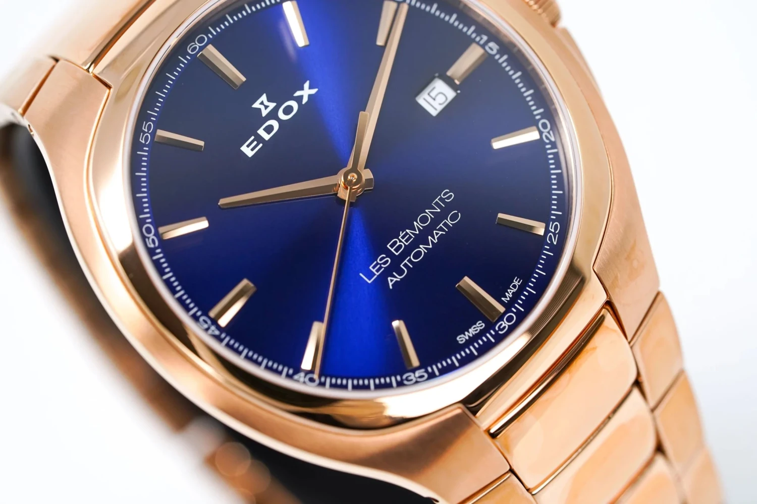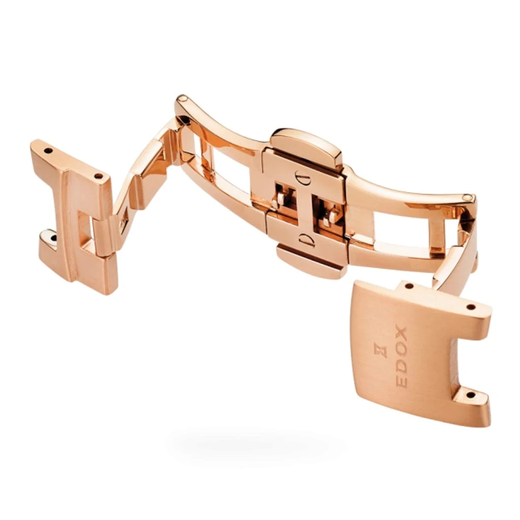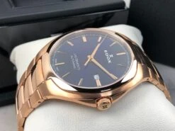 Edox Les Bémonts Ultra Slim Date Quartz Rose Gold Blue 56003-37R-BUIR