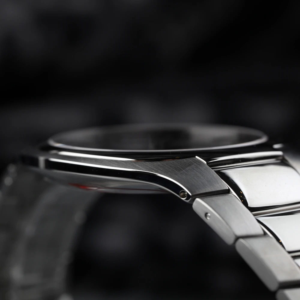 The chic and elegant of this watch probably come from the colors used with good taste. The silver case comes here contrasting finely the sumptuous silver of the dial, as well as the steel of the bracelet. The silver used for the marking finally allows a great readability to the watch …