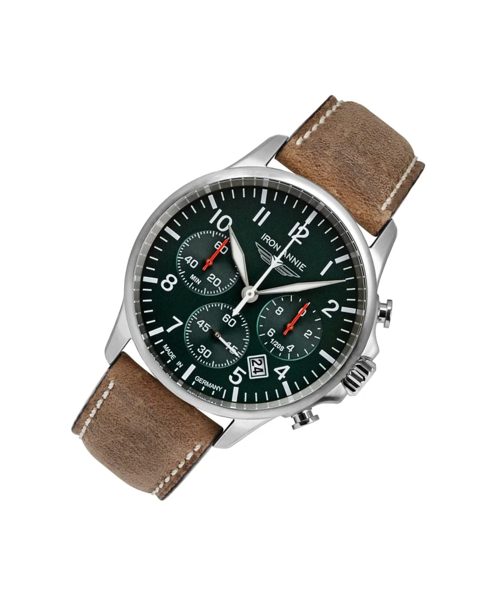 With a sharp Aviator style, this Iron Annie 5872-4 Captain’s Line Green watch has something to please fans of Quartz watches with solid movements.