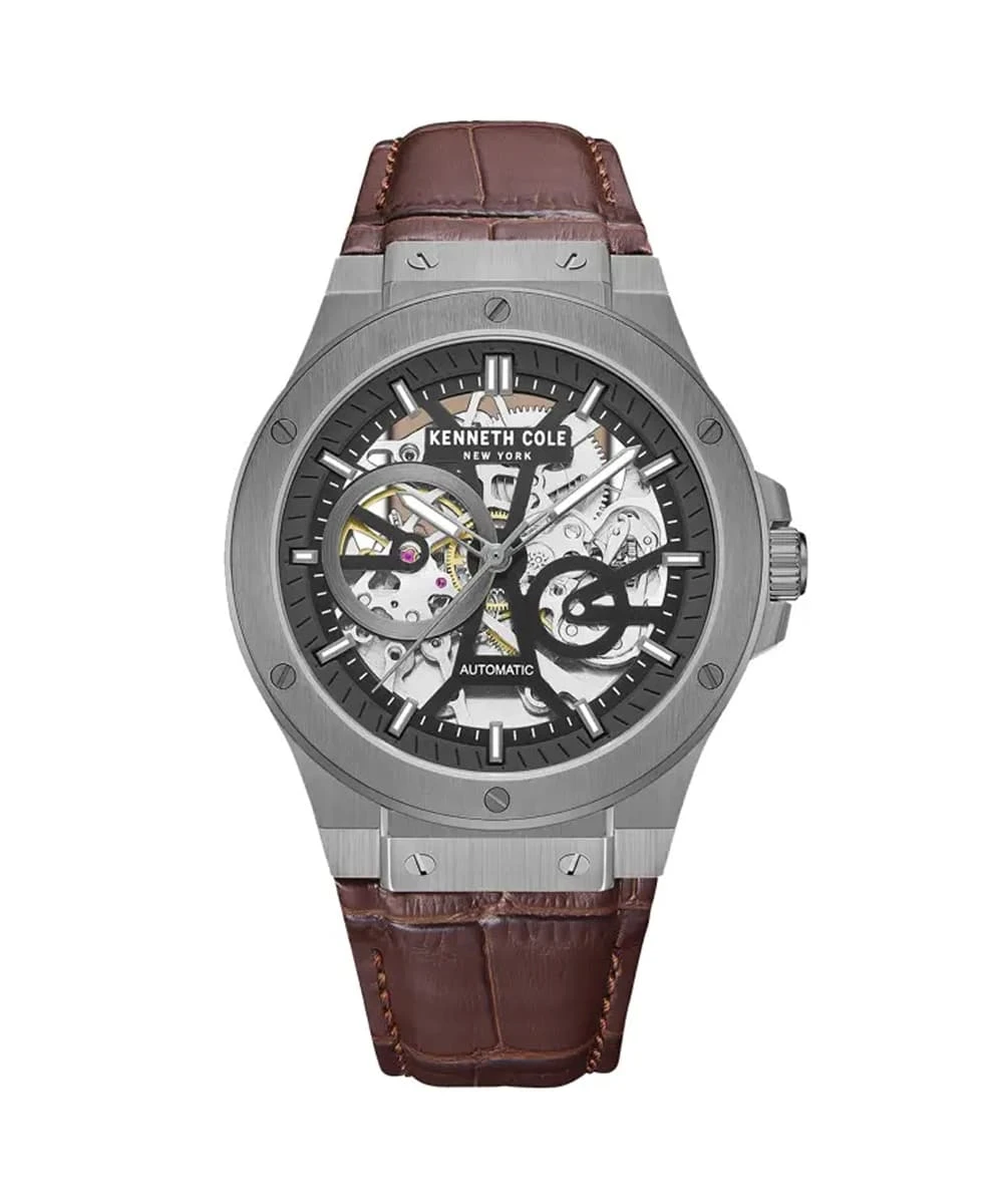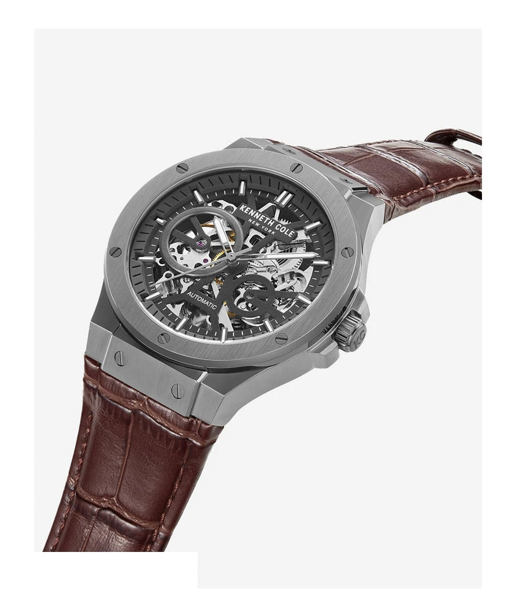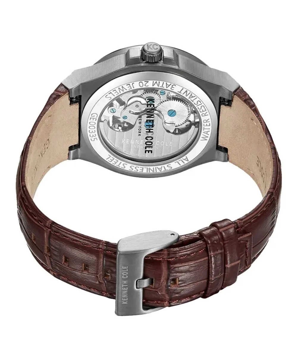 The Kenneth Cole KCWGE0033502 watch embodies the essence of mechanical elegance, fusing contemporary design with traditional watchmaking technology. With its captivating skeleton dial and sophisticated automatic mechanism, this watch is more than just an accessory; it is a statement of style and refinement.