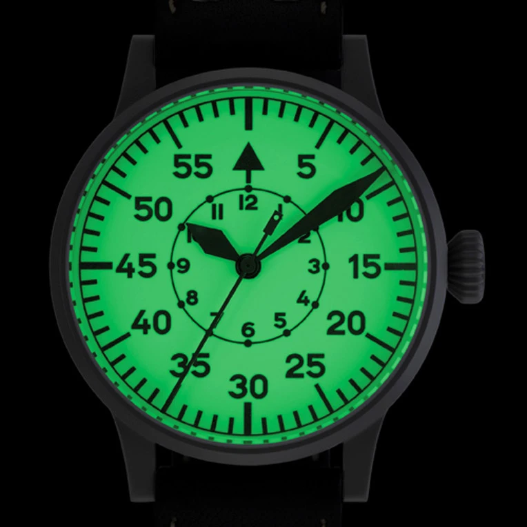 Looking attentively at the dial, we notice that the indexes are not the only ones to be treated with this component, but that the hour, minute and second hands are also equipped with them.