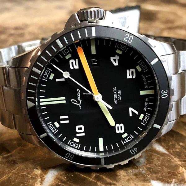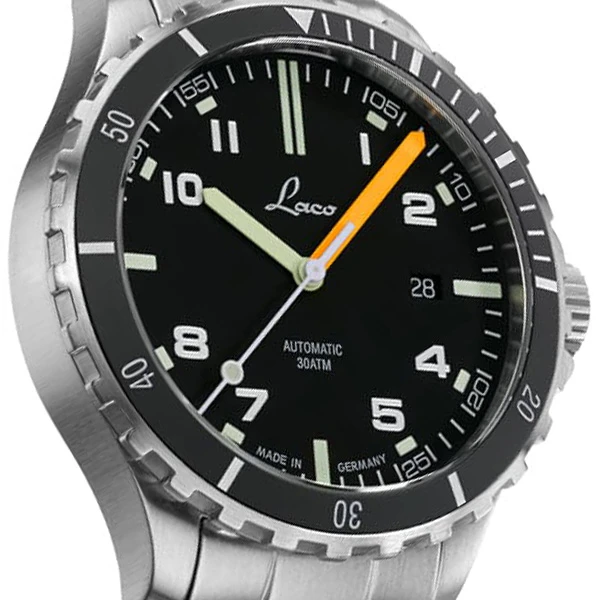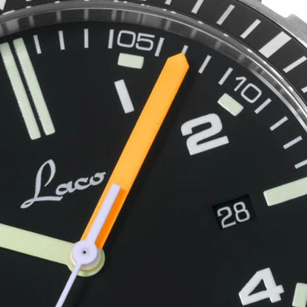 Robust, versatile and bright in the dark: a scorpion has the qualities necessary to thrive in many environments. The same goes for this Laco model, which is also suitable for a wide range of applications. This is why the watch is also equipped with appropriate markings: a raised pattern in the shape of a scorpion.