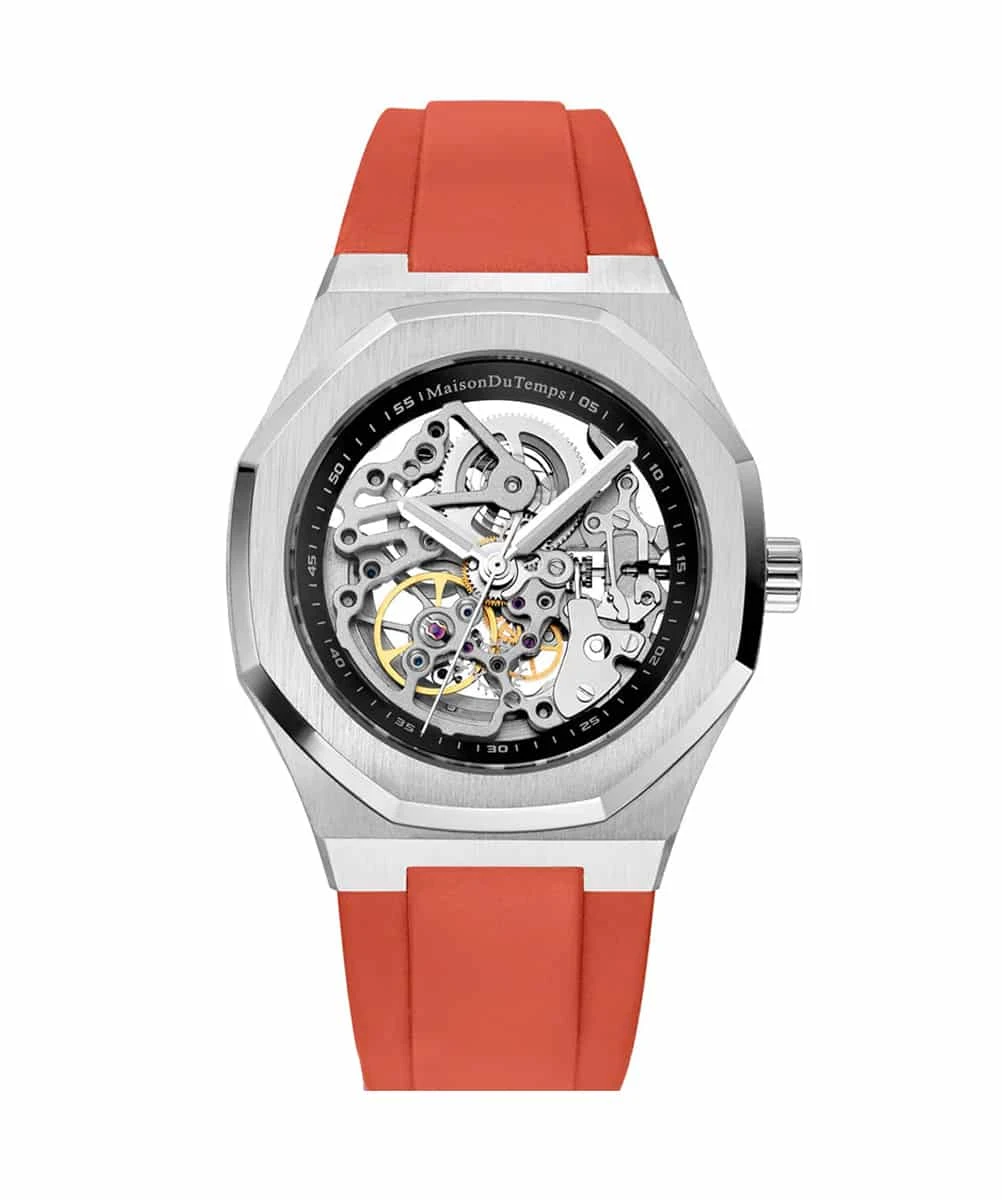 The MAISON DU TEMPS MT Beta Skeleton Silicon Kaki is a masterpiece of horological engineering. Crafted with precision, this timepiece embodies the perfect balance between modern technology and timeless elegance. The skeletonized design reveals the intricate mechanics within, offering a glimpse into the heart of the watch.