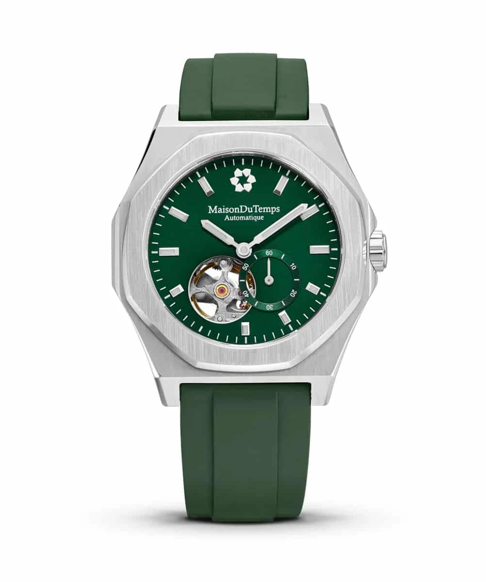 The MAISON DU TEMPS MTDelta Green Rubber Green is a masterpiece of horological engineering. Crafted with precision, this timepiece embodies the perfect balance between modern technology and timeless elegance. The skeletonized design reveals the intricate mechanics within, offering a glimpse into the heart of the watch.