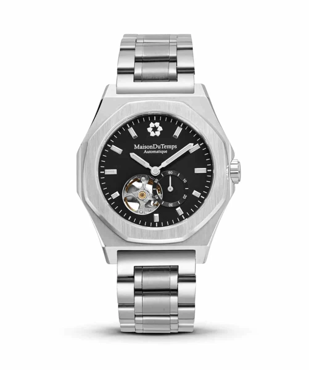 The MAISON DU TEMPS MTDelta Open Heart Black Stell is a masterpiece of horological engineering. Crafted with precision, this timepiece embodies the perfect balance between modern technology and timeless elegance. The skeletonized design reveals the intricate mechanics within, offering a glimpse into the heart of the watch.