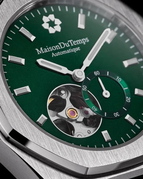 The MAISON DU TEMPS MTDelta Open Heart Green Steel is a masterpiece of horological engineering. Crafted with precision, this timepiece embodies the perfect balance between modern technology and timeless elegance. The skeletonized design reveals the intricate mechanics within, offering a glimpse into the heart of the watch.
