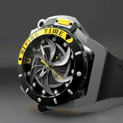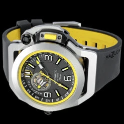 Thanks to an innovative industrial mechanism that allows it to switch from a sporty and elegant watch to a sophisticated chronograph with a click, the Mazzucato RIM Scuba Watch instantly adapts to your style of the moment. Characteristic of Italian design, it never goes unnoticed and resolutely asserts itself as a mark of character and distinction, with its dial inspired by the automotive world and its colored clasp in the shape of a clip.