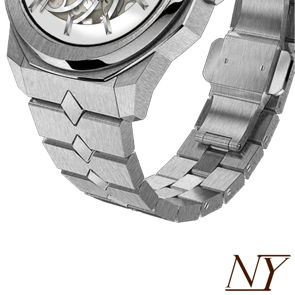 Probably the most interesting novelty of this year, the Nappey Skeleton Silver And White Steel, also known by its code name NY41-AD2XM-2B2AA, is a marvel of originality.