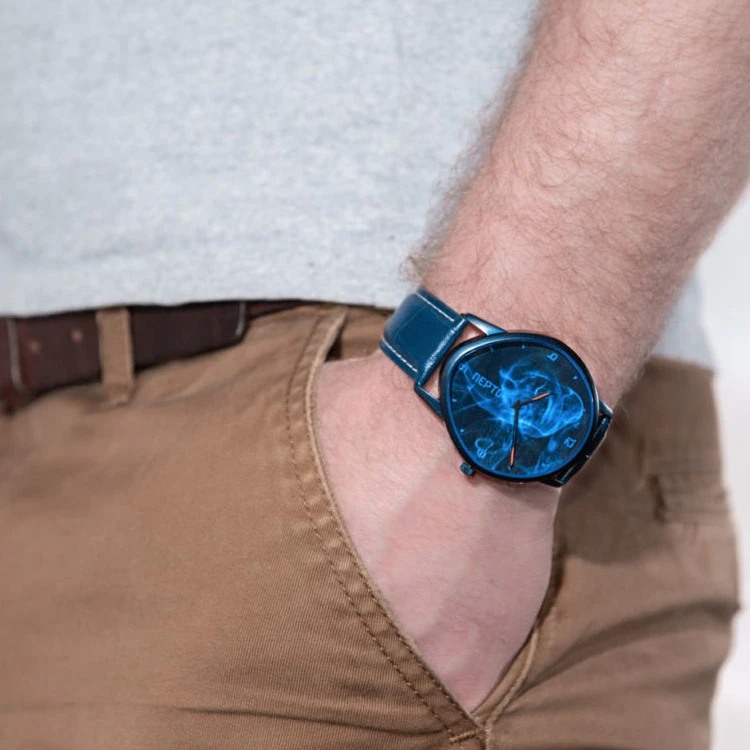 Affirm your unique personality with this dial! Quite extraordinary, it is characterised by its blue dial with various blue shades in 3D printing. As the name of the model indicates, an impression of blue smoke is represented on the dial with relief and gives a pleasant and futuristic style to this timepiece that will give its touch of style to your wrist.