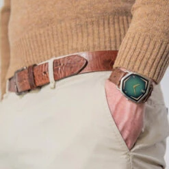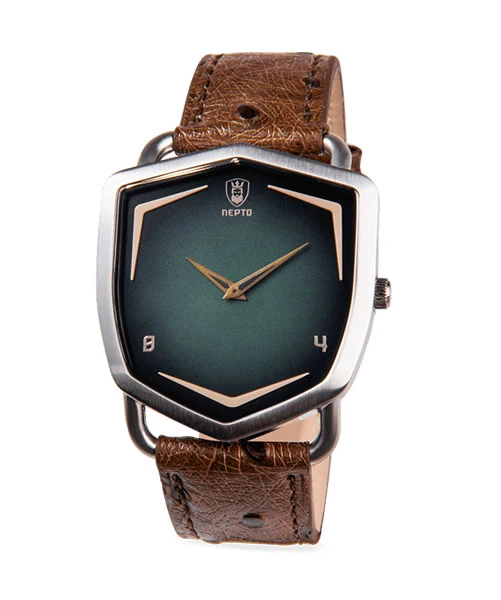 NEPTO has paired the Green Spectra with a brown leather strap.