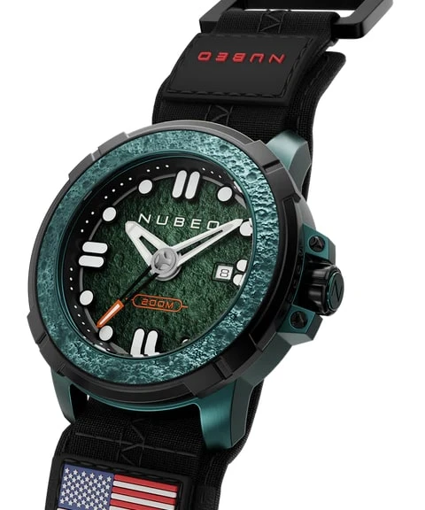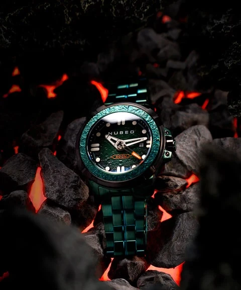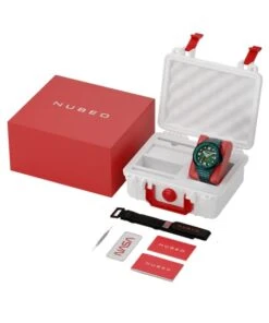 The transparent case back offers a glimpse into the intricate inner workings of the watch, allowing enthusiasts to admire the craftsmanship and engineering that define Nubeo’s reputation in the world of horology.