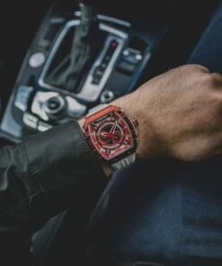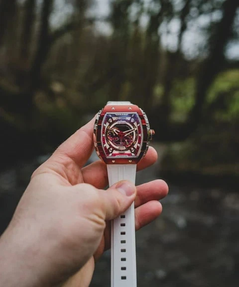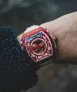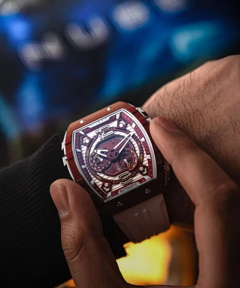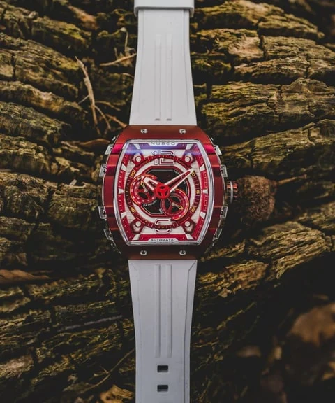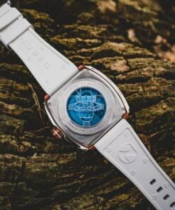 The transparent case back offers a glimpse into the intricate inner workings of the watch, allowing enthusiasts to admire the craftsmanship and engineering that define Nubeo’s reputation in the world of horology.