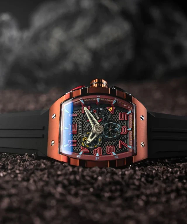 While man can claim to have conquered the land on Earth – or Terra Firma – it is some surprise to discover that indeed that only 5% of the Ocean floor has been mapped. Above us, 100 kilometers above sea level lies the Kármán Line, commonly representing the border between the Earth’s atmosphere and outer space. Man has barely scratched through its understanding of the outer world, which remains as much a mystery as the seas below. Nubeo portrays and takes inspiration from both the space and sea to create timepieces in tribute, in function and in design. Each Nubeo timepiece is defined by performance, functionality yet with a design language that blends the organic and natural with the industrial in a manner that makes for a truly unique exhibition of time.