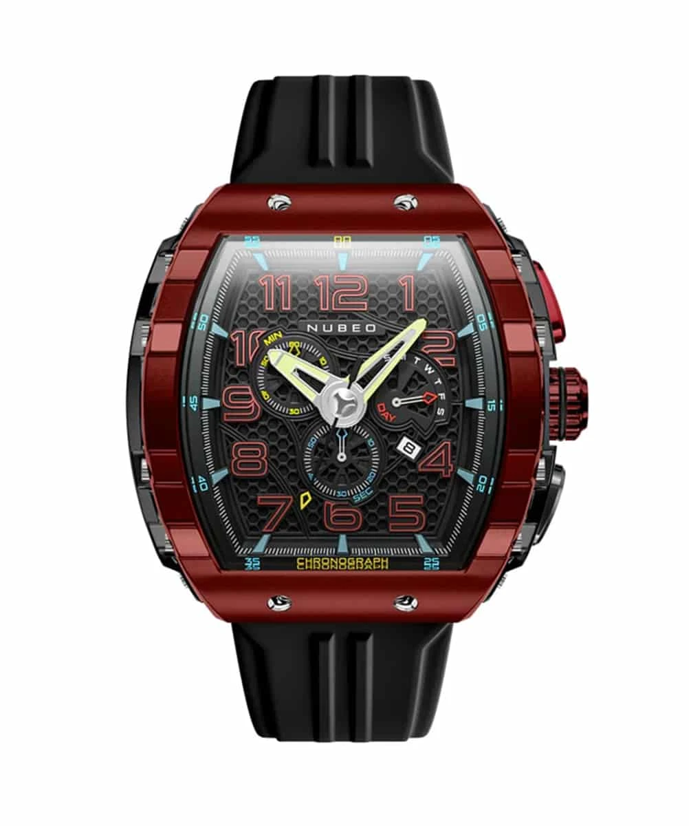 NUBEO WATCH MAGELLAN RETROGRADE CHRONOGRAPH CRIMSON RED