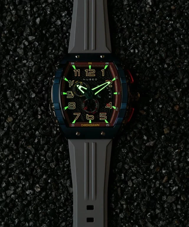 At the heart of the Nubeo Magellan Chronographe Retrograde is a meticulously engineered automatic movement renowned for its precision and reliability. This self-winding mechanism uses the movement of the wearer’s wrist to power the watch, guaranteeing constant, accurate timekeeping. The intricate workings are visible through the transparent caseback, offering a glimpse of the watch’s complex engineering and superior craftsmanship.