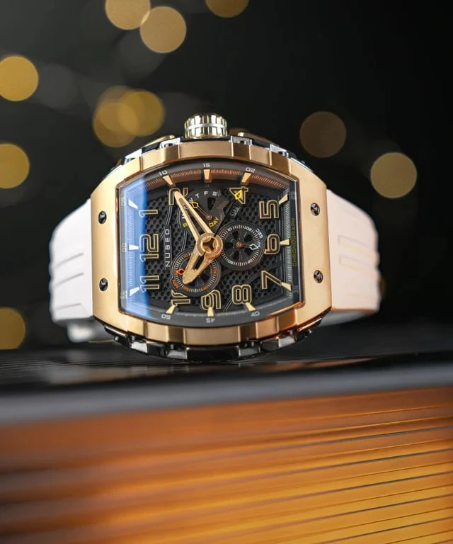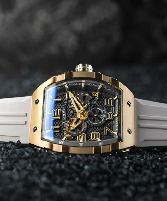 At the heart of the Nubeo Magellan Chronographe Retrograde is a meticulously engineered automatic movement renowned for its precision and reliability. This self-winding mechanism uses the movement of the wearer’s wrist to power the watch, guaranteeing constant, accurate timekeeping. The intricate workings are visible through the transparent caseback, offering a glimpse of the watch’s complex engineering and superior craftsmanship.