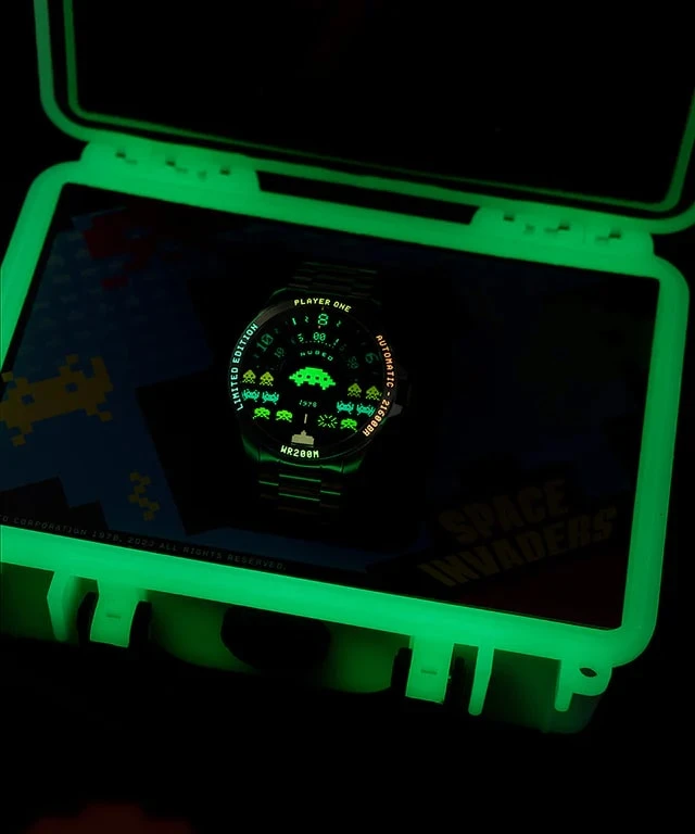 Powered by a precise and reliable automatic movement, this watch uses the kinetic energy of your wrist movements to keep accurate time, eliminating the need for a battery. Made with high-quality stainless steel, mineral glass and a luxurious stainless strap, the Quasar Automatic Space Invaders Limited Edition exudes sophistication and durability. With water resistance up to 200 meters (20ATM), this watch is as functional as it is elegant, suitable for a variety of activities and environments.