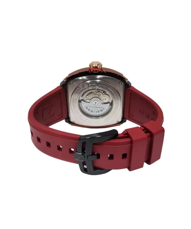 The transparent case back offers a glimpse into the intricate inner workings of the watch, allowing enthusiasts to admire the craftsmanship and engineering that define Nubeo’s reputation in the world of horology.
